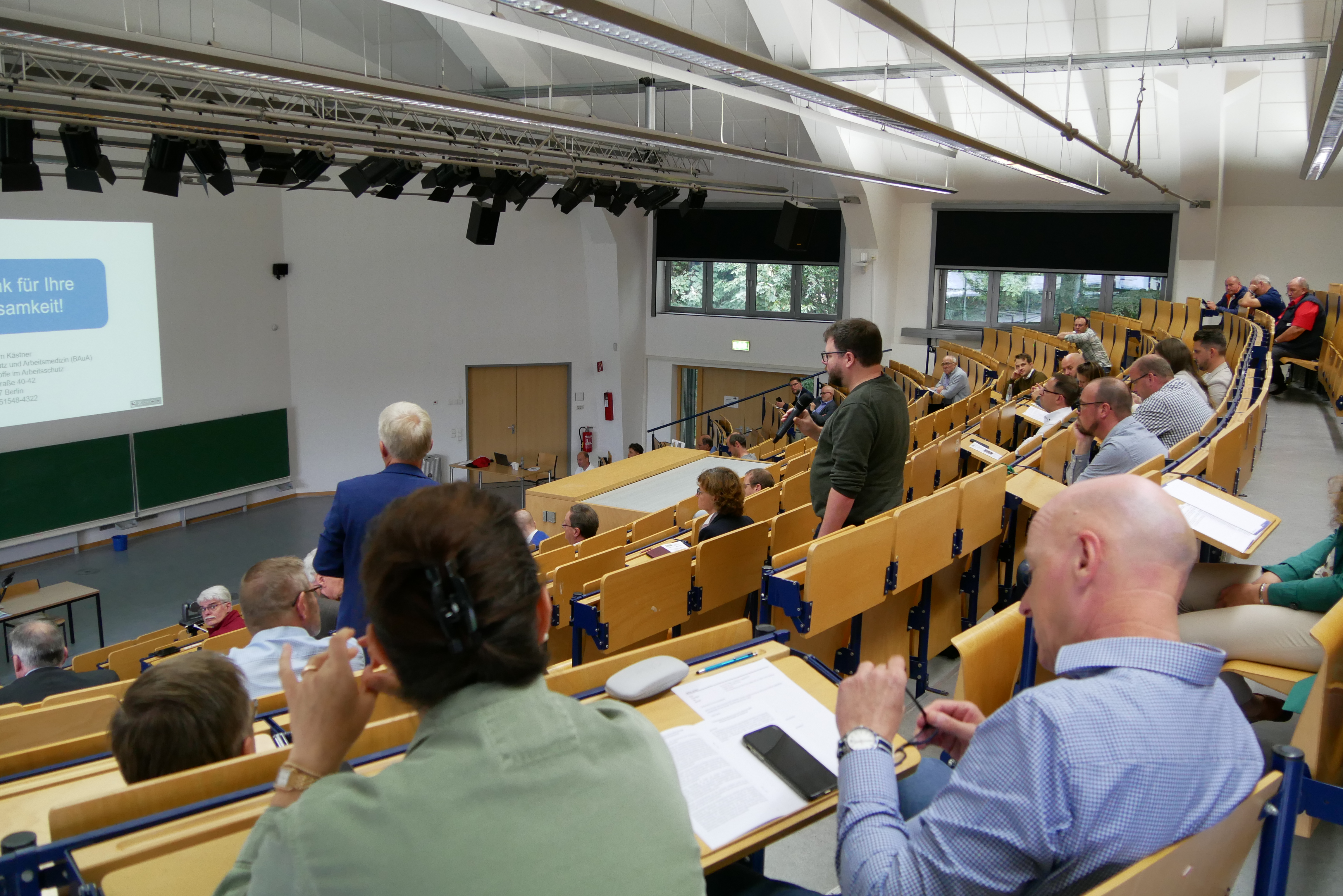 Anlässlich des besonderen Anlasses der 50 Jahre Sicherheitstechnik in der Bergischen Universität Wuppertal war das Auditorium im Hörsaalzentrum FZH 1 beim Wuppertaler Sicherheitstag 2025, 14. Sicherheitswissenschaftlichen Forum und 17. VDSI-Forum NRW mit mehr als 120 Teilnehmenden gut besucht. Bild: Ann Kathrin Wissemann (Institut ASER e.V.)